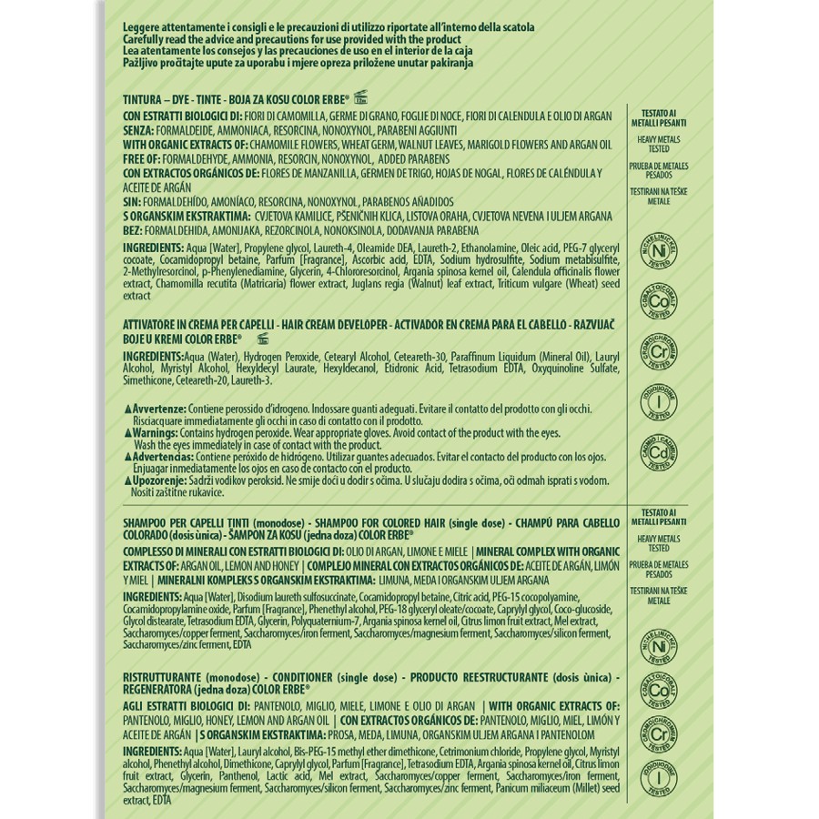 NAHRAZUJE BARVY CLASSICO No.27. Bez amoniaku, resorcinolu, nonoxynolu, parabenů a formaldehydu je barva COLOR ERBE a avantgardní barvou na vlasy, vždy připravena zaručit kvalitu a bezpečnost. VEGAN. Podrobné informace