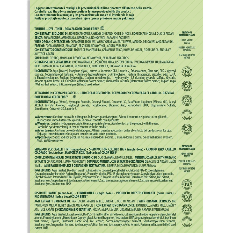 NAHRAZUJE BARVY CLASSICO No.14. Bez amoniaku, resorcinolu, nonoxynolu, parabenů a formaldehydu je barva COLOR ERBE a avantgardní barvou na vlasy, vždy připravena zaručit kvalitu a bezpečnost. VEGAN. Podrobné informace