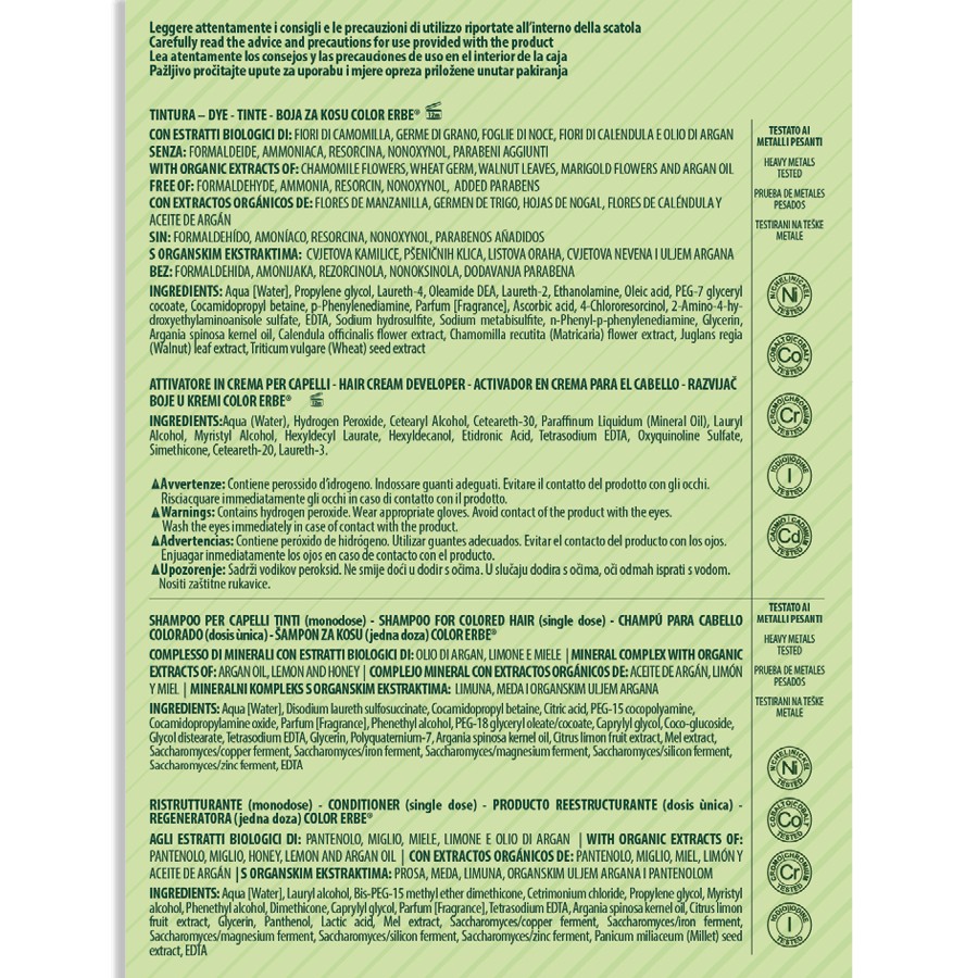 NAHRAZUJE BARVU CLASSICO No.03. Bez amoniaku, resorcinolu, nonoxynolu, parabenů a formaldehydu je barva COLOR ERBE a avantgardní barvou na vlasy, vždy připravena zaručit kvalitu a bezpečnost. VEGAN. Podrobné informace
