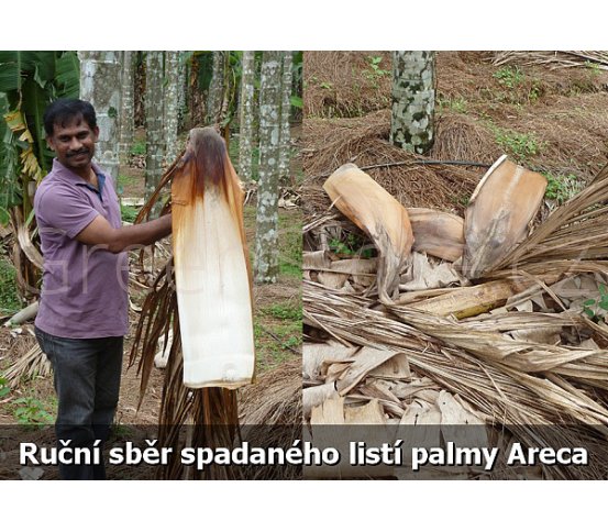 Každá palma přirozeně shazuje listy, když potřebuje prostor pro listy nové. Listy palmy arekové (latinsky Areca Catechu) se využívají rozemleté jako krmivo pro dobytek, topivo, nebo přírodní hnojivo. I přes toto využití však část listů přebývá a nemá využití. Proč tedy spadané listy nevyužít ještě jinak? Na tuto otázku již známe odpověď a využití je etické i ekologické!